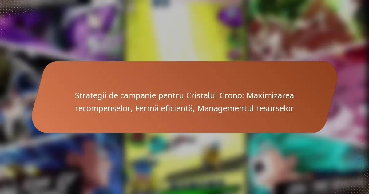 Strategii de campanie pentru Cristalul Crono: Maximizarea recompenselor, Fermă eficientă, Managementul resurselor