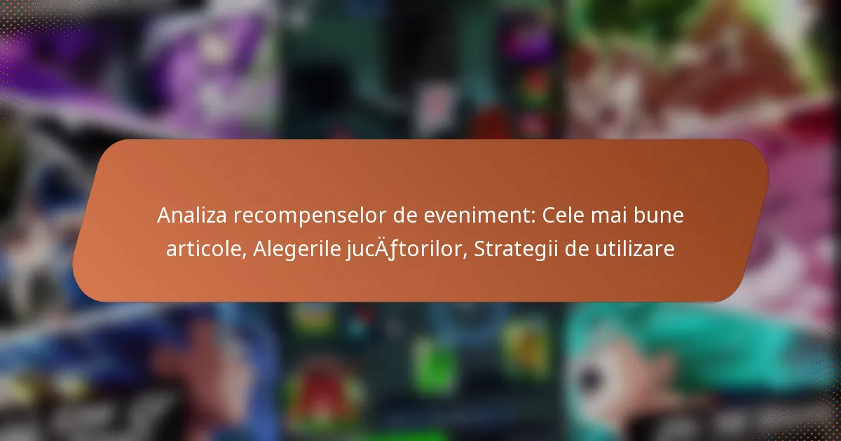 Analiza recompenselor de eveniment: Cele mai bune articole, Alegerile jucătorilor, Strategii de utilizare
